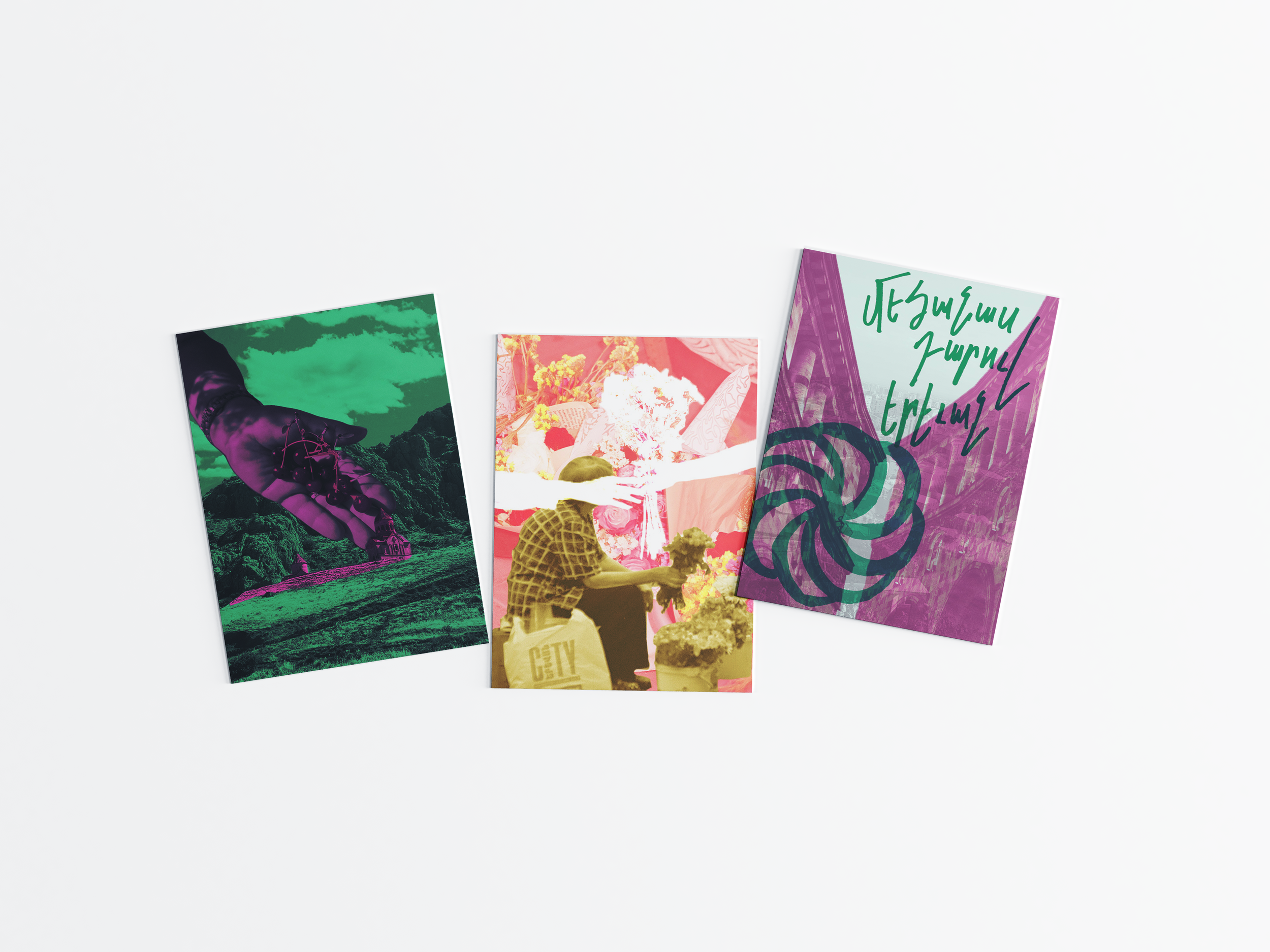The “Colors of Armenia” postcard series highlighted aspects of Armenian history, lifestyle, and culture and was elevated by each color’s meaning and significance in the Armenian culture. The postcards were made from photos and mementos I collected during my trip to Armenia which were collaged together in Photoshop and printed on a Risograph printer.